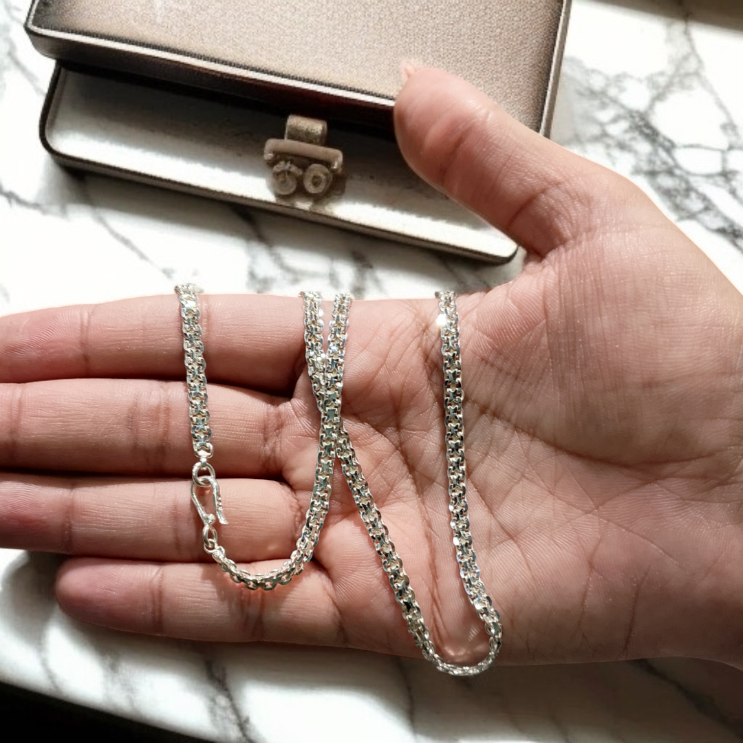 This 925 silver chain is coated with stainless steel for added durability. Perfect for every day wear, it will elevate any outfit and withstand daily use without tarnishing. Upgrade your jewelry collection with this versatile and long-lasting chain.