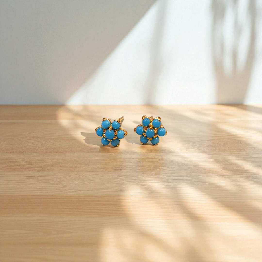 Expertly crafted with 925 silver, these Flower Studs shine with the brilliance of natural Feroza, Emerald, Ruby, and Pearls stones. Enhance any outfit with the luxurious touch of these intricate and elegant earrings. Beautifully designed and professionally made for a timeless and sophisticated look.
